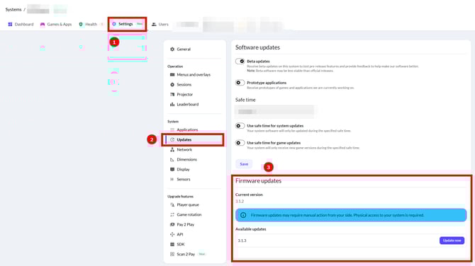 - Go to your system's admin page to Settings -> Updates -> Firmware updates