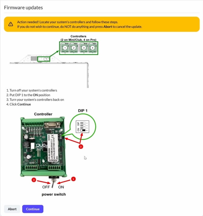Mini and Club systems only have 2 controllers to update, while Pro has 4