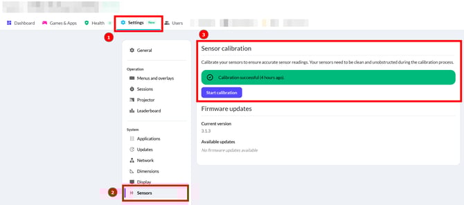 - With the new firmware installed, now you will have access to the new section in your system's admin page at Settings -> Sensors -> Sensor calibration. There you have a new "Start calibration" button that performs sensor calibration automatically.