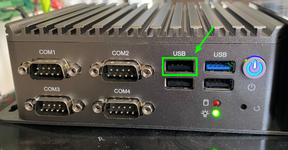 - Connect the USB end to the designated port on the PC, which is located to the left of the blue port. It is crucial to use only this specific USB port for the projector connection.