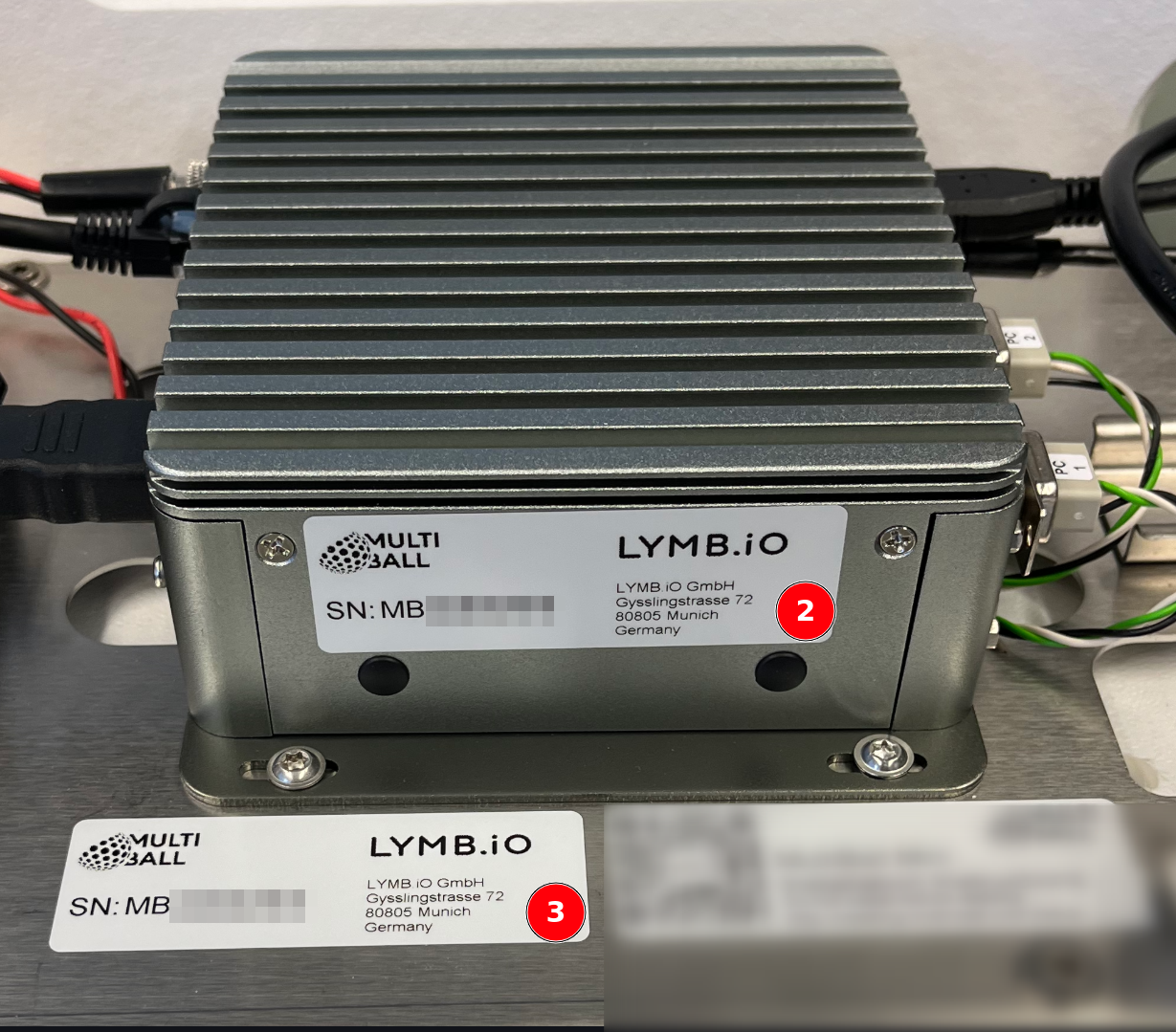 There are two labels inside the console, one on the metal plate, one on the computer.